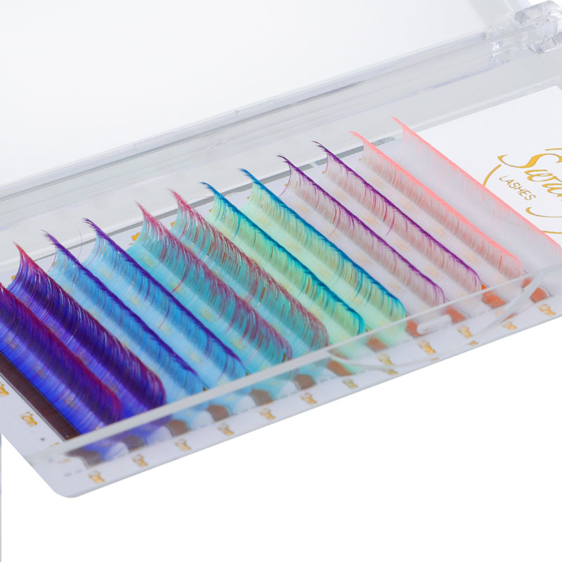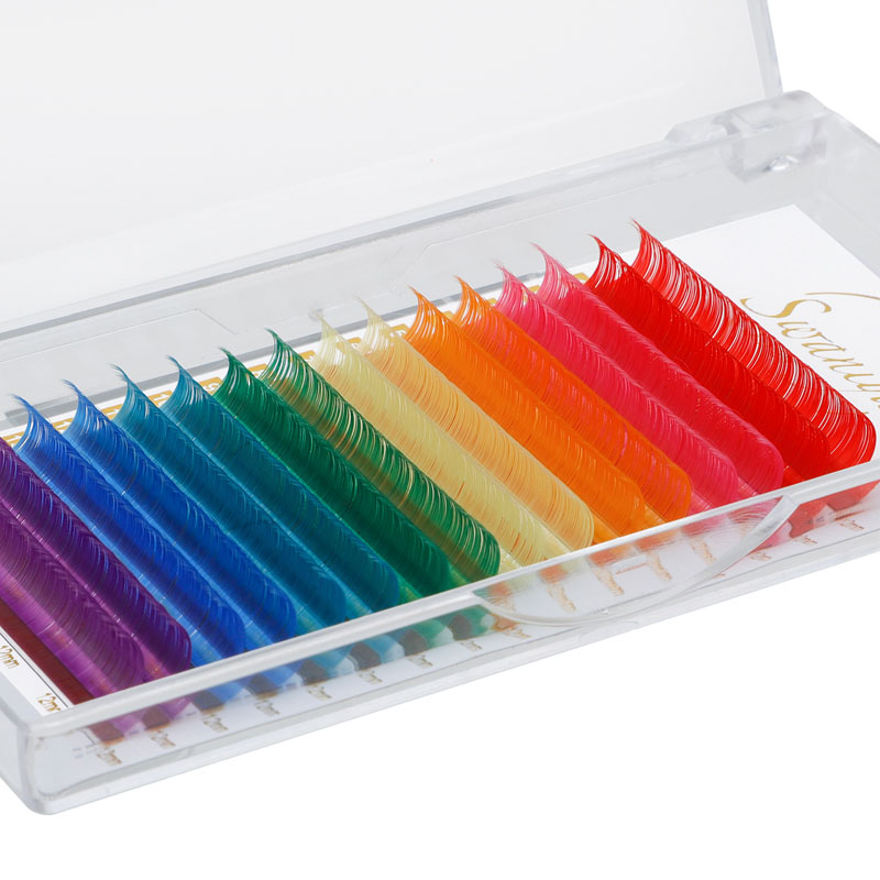 Aféierung faarweg Eyelash Extensiounen - Déi perfekt Léisung fir déi, déi e Pop vun der Faarf op hir Wimperen derbäi wëllen! Aus héichwäertege PBT Fasermaterialien gemaach, dës Faarf Eyelasherbesetzunge sinn an enger breeder Palette vu liewege Faarwen, déi sécher Är Aen wäert maachen.